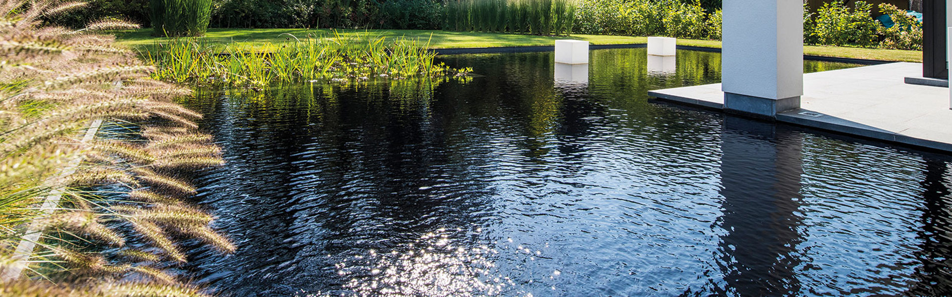 Wanneer je vijver in volle zon ligt en veel uren zonlicht per dag ontvangt, bescherm je hem met een bedekking van drijfplanten of drijfbladplanten of constructies die schaduw geven (vlonders, bruggen, pergola naast of misschien een stuk over de vijver). Bij zeer heet weer kan je ook eenvoudigweg een schaduwdoek over de vijver spannen.
